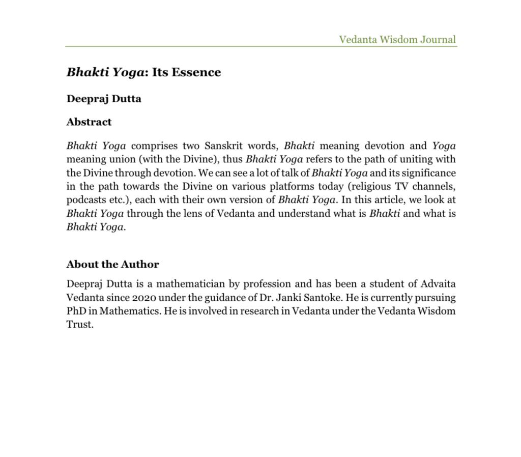 Bhakti Yoga comprises two Sanskrit words, Bhakti meaning devotion and Yoga meaning union (with the Divine), thus Bhakti Yoga refers to the path of uniting with the Divine through devotion. […]
